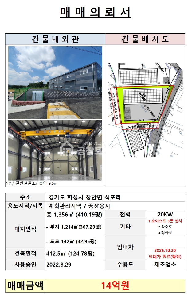현재용도 | 공장 (제조장) | 추천용도 | 공장(제조장), 작업장, 창고, 전시장 등 |